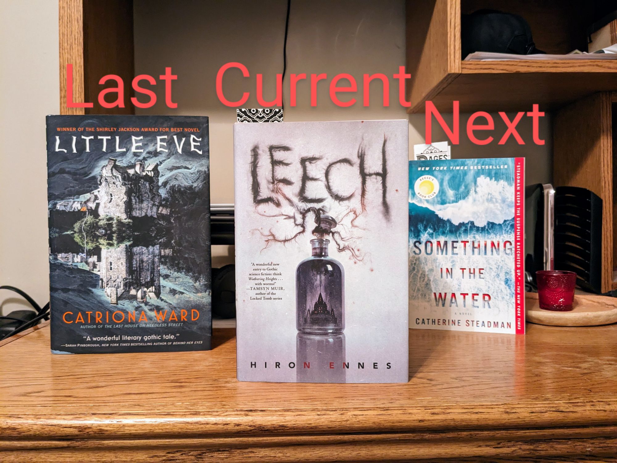 This is Hirron Ennes’s first novel. If this is demonstrative of the level of quality that from them, they can expect for me to become a Constant Reader. I’m about 100 pages into the story, so about a third of the way through. Though I often find first person perspective to be too limiting to be engaging enough to sustain a novel-length story, Ennes has found a way to add a dimension of complexity to this otherwise limiting perspective. I’d want to finish the story just to have some explanation and closure of that aspect of the story; when you add in the actual plot of the story, it’s hard to put down. A jacket blurb puts it best: ”…think Wuthering Heights… with worms!”