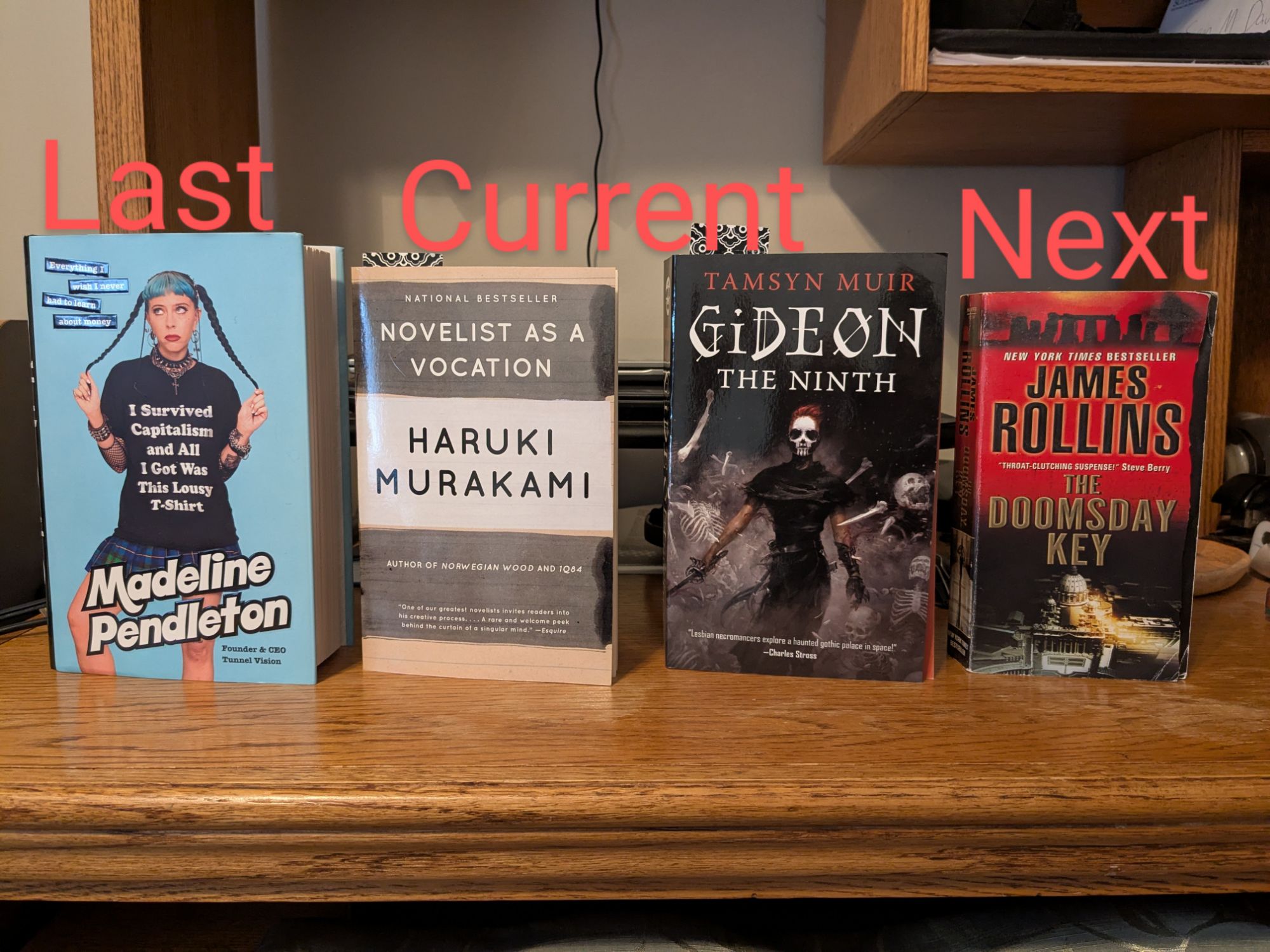 I literally just started this the other night, so I don’t have much to say about it yet, other than to restate that it was recommended to me by my younger twin and that the cover blurb (“Lesbian necromancers explore a haunted gothic palace in space!”) is what really drew me in. Stoked to be reading this finally.