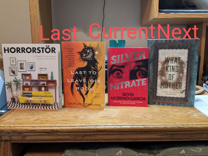 Horrorstör by Grady Hendrix; Last to Leave the Room by Caitlin Starling; Silver Nitrate by Silvia Moreno-Garcia; What Kind of Mother by Clay McLeod Chapman